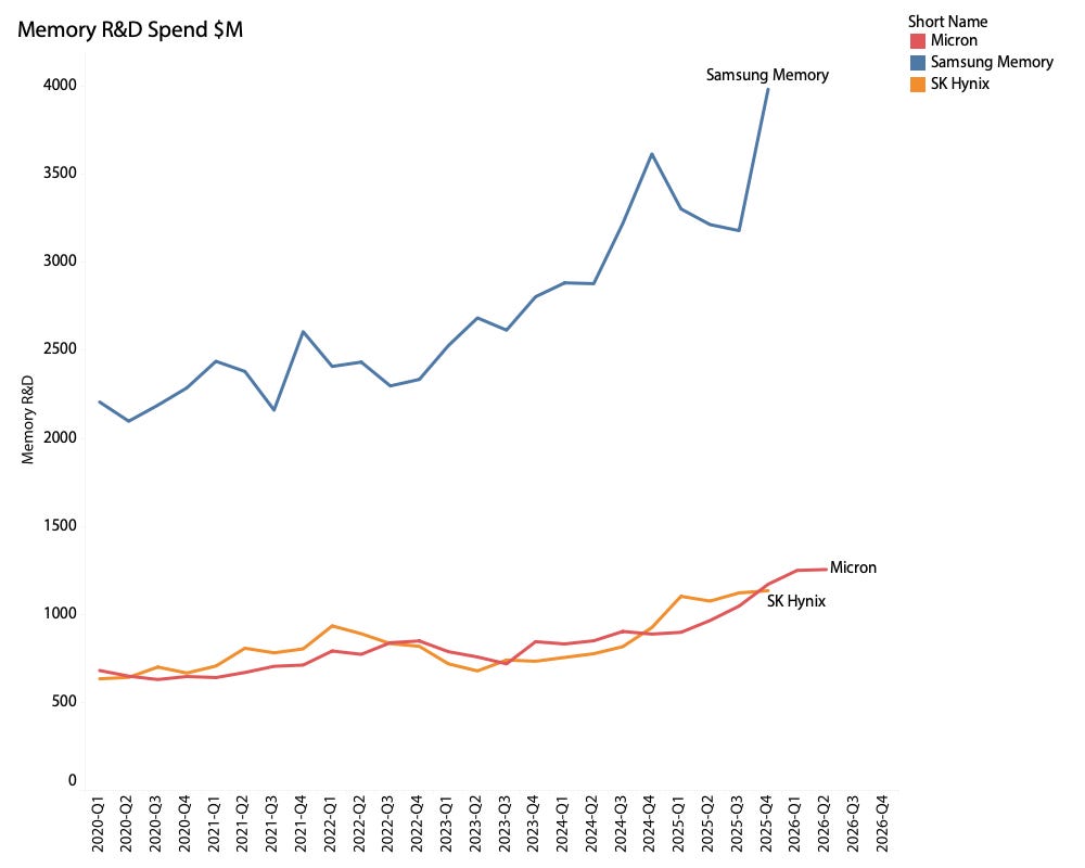 Currently, Micron has R&D spending very similar to SK Hynix's, and, quite impressively, both are competing effectively with Samsung, which has a much larger R&D budget. The Korean conglomerate currently spends about half of its corporate R&D budget on memory, a testament to the fact that money spent does not always yield proportional results. Samsung certainly still has many internal problems to address, even though the latest result is much better.