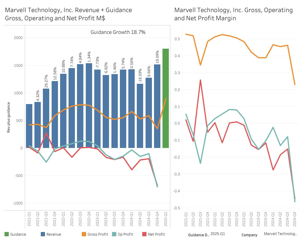 Marvell's revenue performance in Q3 showed a strong 19% growth, and the company is guiding for another 19% revenue growth next quarter.