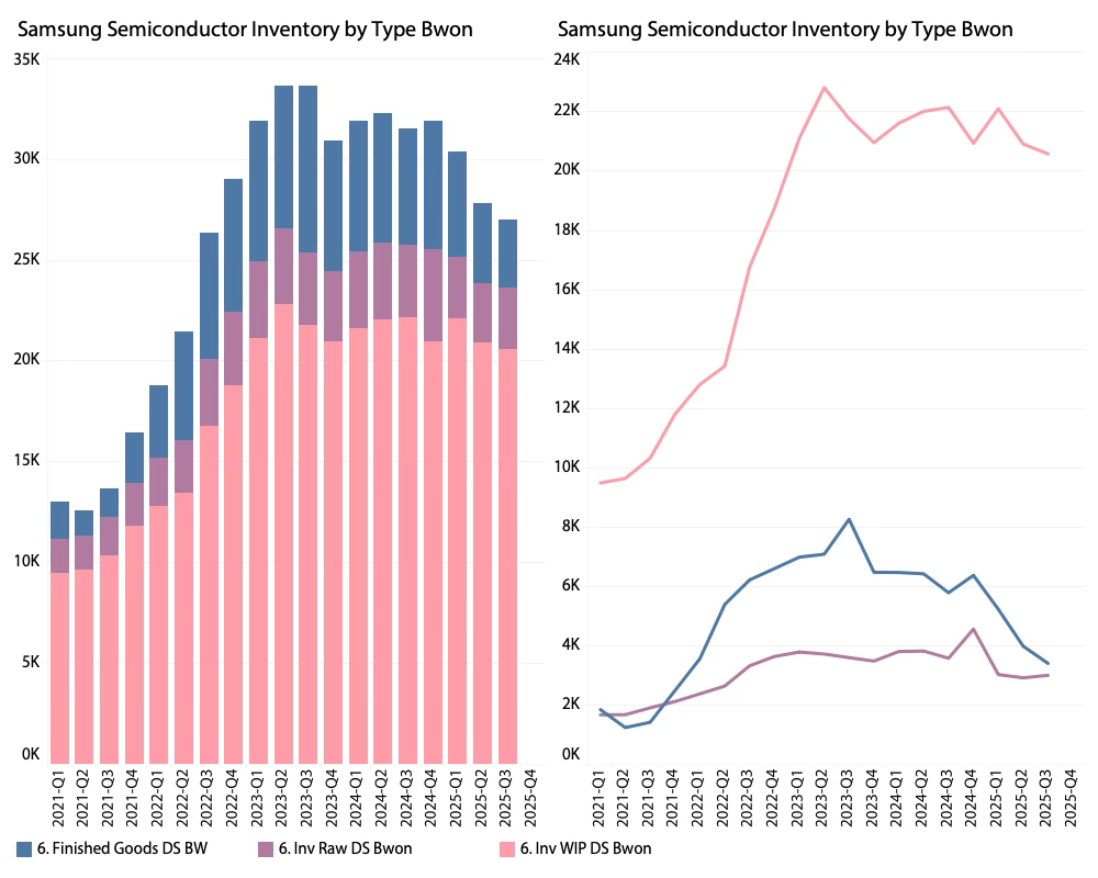 Despite a decline in finished goods inventory, it is not sufficient to account for the sharp increase in revenue. Samsung's current performance increase is mainly linked to spiking memory prices.