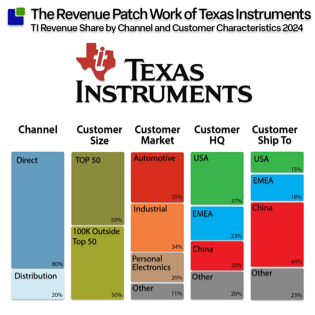 But hey, you shouldn't trust me; you should trust TI’s information. This is what the TI revenue patchwork looks like: